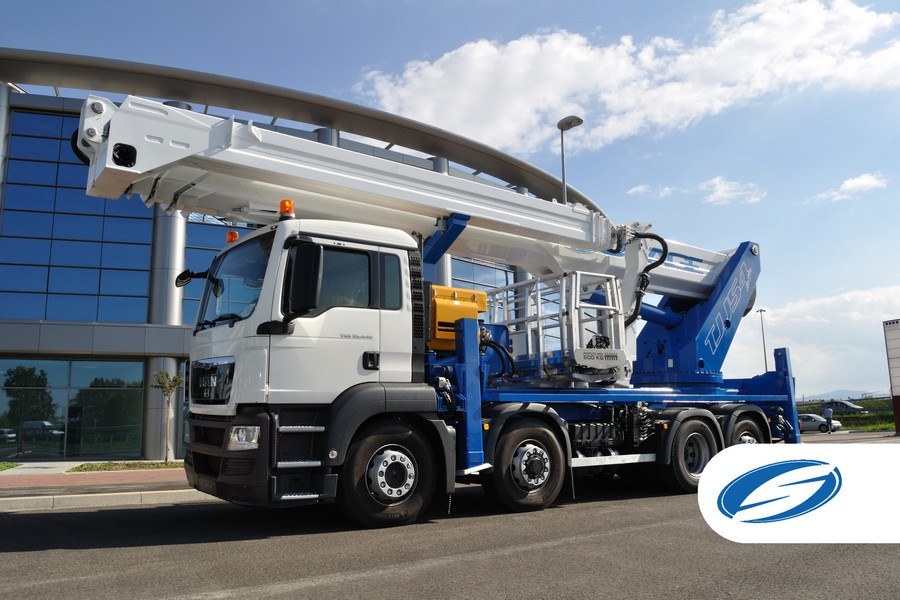 The ForSte 54TJJ truck-mounted aerial platform is a double telescopic unit with a movable jib arm for vehicle installations starting from 26 t.